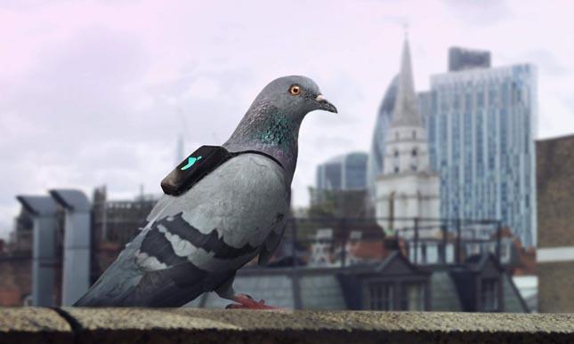 A személyre szabott, mindössze 25 grammos, GPS nyomkövetővel ellátott aprócska hátizsákokat viselő galambok megdöbbentő adatokkal szembesítették a londoni lakosokat: egyes területeken a légszennyezettség a világ legszmogosabb városaival vetekszik. A szárnyasok csomagjában a GPS mellett olyan érzékelőket bújtattak el, amelyek mérik a nitrogén-oxidot, a különféle illékony vegyületeket és az ózonszintet.