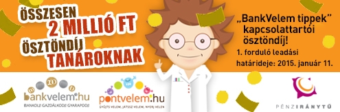 A BankVelem ösztöndíj nyertes tanáraink, a Pénz7 nyitó eseményén, 2015. március 9-én vehetik át díjukat.
